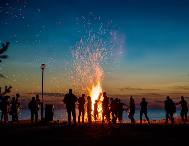 • Warm your body and soul around a bonfire